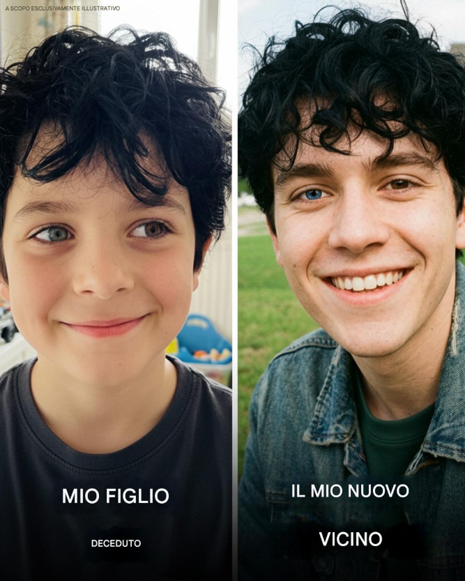 Ho seppellito mio figlio di nove anni dieci anni fa. Quando i nuovi vicini si sono trasferiti, ho portato loro una torta per darli il benvenuto. Suo figlio adolescente aprì la porta… E quasi svenii. Aveva la faccia di mio figlio! E quando l’ho detto a mio marito, mi ha sussurrato qualcosa che ha cambiato tutto.